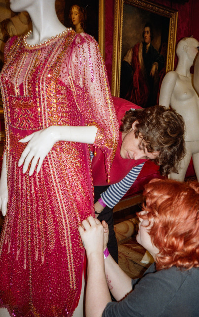 Vibrant hand-printed chiffon, punk safety pins, and intricate beading adorn original garments by Rhodes, showcasing key looks of her 56-year-long illustrious career in fashion. With the opulent Red Drawing Room as her backdrop, Rhodes’ garments clothe her mentor Adel Rootstein’s famously lifelike mannequins, as if in the middle of a fabulous party.
